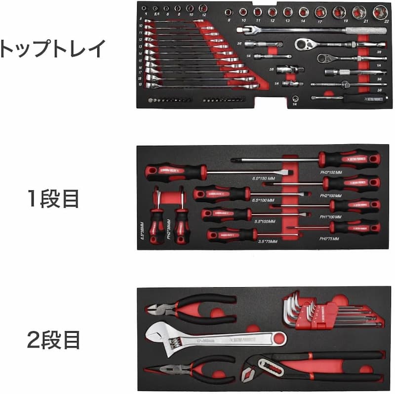 最下段には追加工具の収納スペースもあり、拡張性も十分。