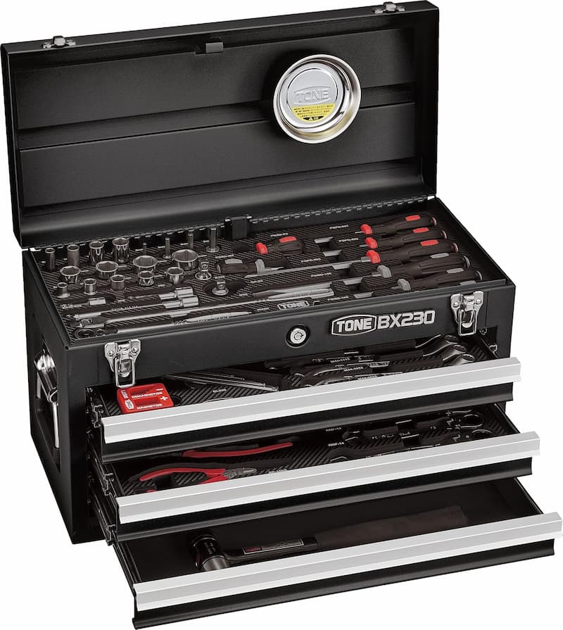 TONEのツールセット TSA450は、工場や現場での整備作業に最適な、チェストタイプの据え置き型ツールセットです。