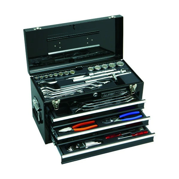 収納ケース(チェストまたは専用ケース)は、工具を整理しやすく保管しやすい設計で、作業場もすっきり保てます。