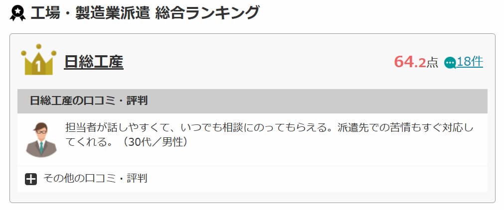 ■ 運営会社の日総工産はオリコン顧客満足度3年連続の総合1位