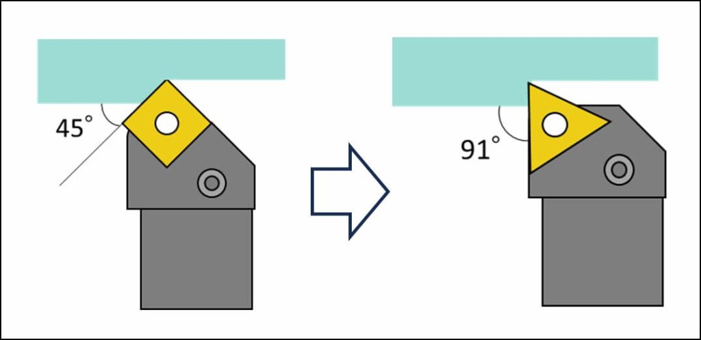 ただし、切り込み角を大きくすると機械側への負荷も大きくなるため、構造剛性との相性確認が必要になります。
