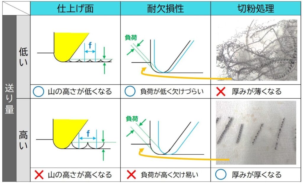 仕上げ条件に合わせて、適切な送り速度を見直すことが大切です。